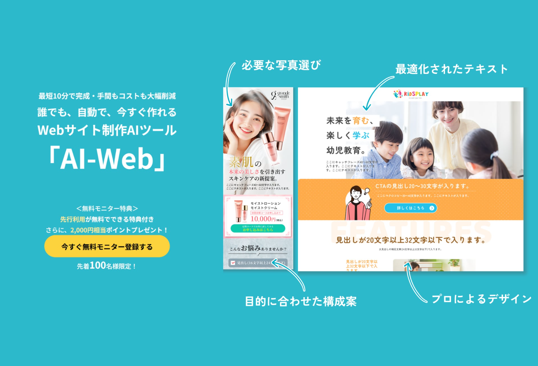 とにかく早くサイトができる!