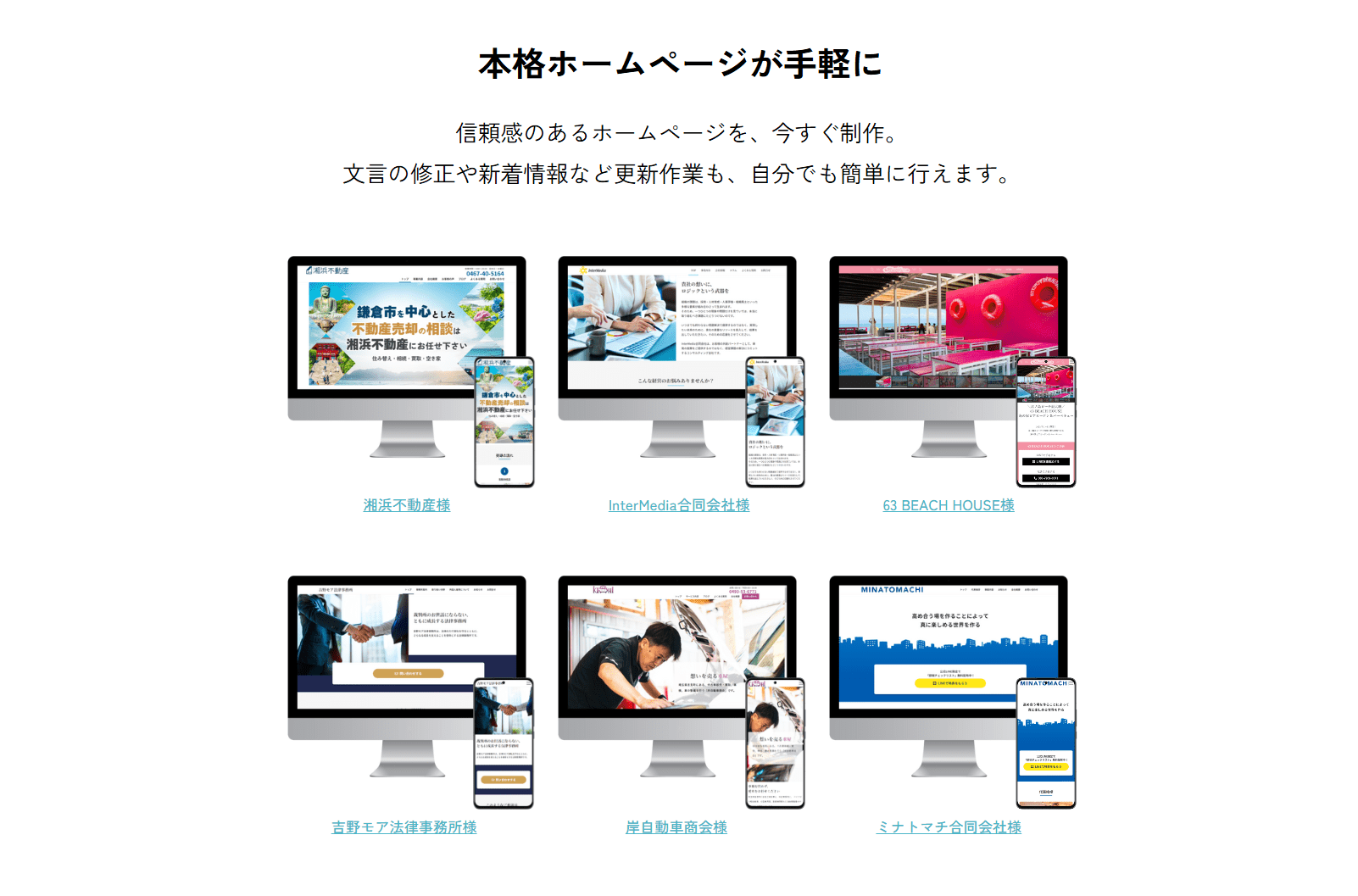 初期費用5万円、月々5,500円~。信頼感のあるホームページを、今すぐ制作。 文言の修正や新着情報など更新作業も、自分でも簡単に行えます。 初期費用5万円
